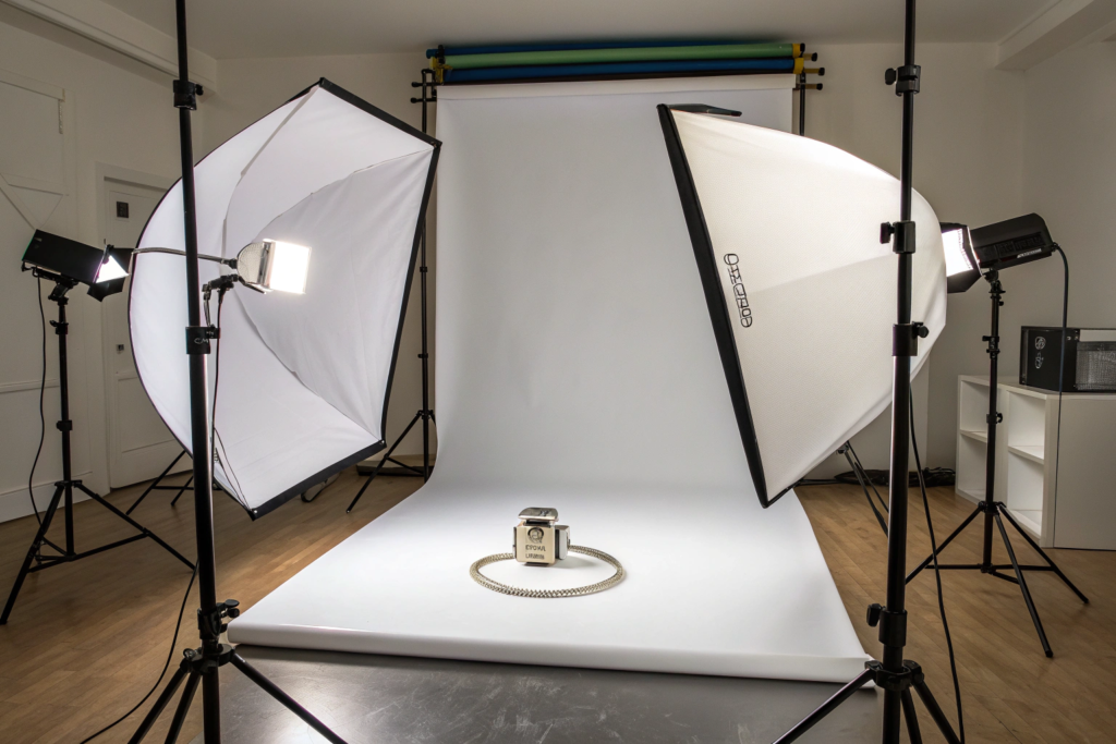 Shoot at an angle rather than straight on. This puts your reflection outside the frame. Position the product so that the camera is reflected in a less noticeable area, like a dark part of the studio rather than a bright light. Sometimes tilting the product slightly changes what it reflects. Small adjustments make a big difference. This angle management comes with practice.