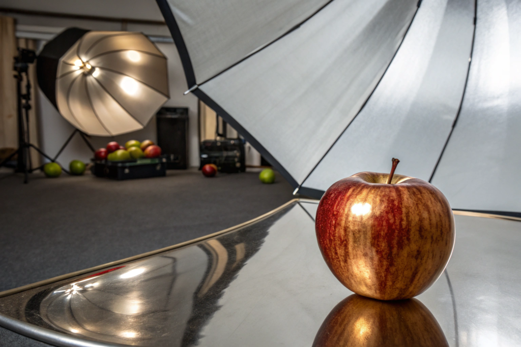 The goal with metallic surfaces is to create defined highlights that show the shape without blowing out the detail. You want the light to wrap around curves, not hit flat surfaces directly. This requires soft, diffused light from multiple angles.