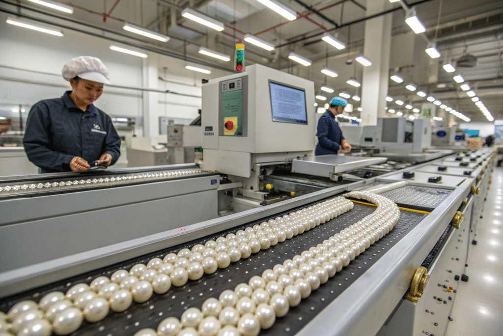 Robotic assembly systems bring engineering precision to pearl attachment, executing each operation with consistent accuracy regardless of production volume or complexity.