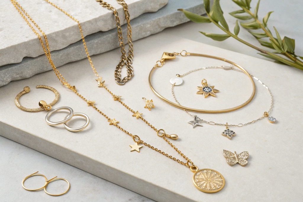 Jewelry for spring leans towards layering and personal expression. Delicate, layered gold or silver necklaces with small pendants (stars, initial charms, organic shapes) are a cornerstone. Stackable rings and hoop earrings in varying sizes remain endlessly popular. The trend is towards mixing metals and textures for a curated, individualistic look.