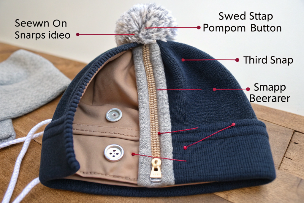 The method we choose depends on the product and the client's preferences. For a permanent, ultra-secure attachment, we sew the pompom directly into the construction of the hat. For a removable option, we use buttons, snaps, or ties. Each method has its pros and cons. Our job is to guide you to the right choice for your specific product and target market. For standards on attachment strength for children's products, the Consumer Product Safety Commission (CPSC) has clear guidelines.