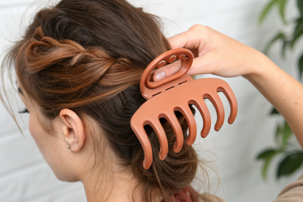 The defining hair accessory trends for US boutiques in 2026 are the oversized, sculptural matte acetate claw clip in earthy and desert tones, the return of the embellished slim barrette and hair pin set featuring freshwater pearls and mixed metals, the elevated fabric headband in textured boucle and brushed shearling, and the resurgence of the classic French hair pin in updated bio-resin and tortoise materials.