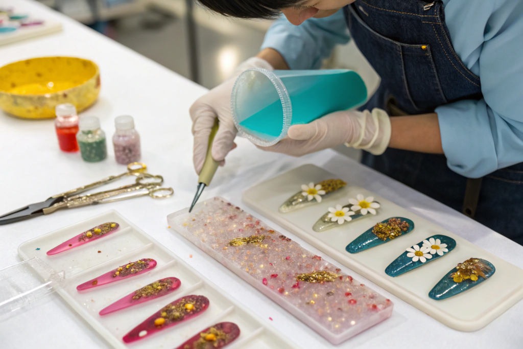 Resin has become one of the most exciting materials in hair accessory design. It is versatile. It can be clear or colored. It can hold other decorative elements inside it. It can be molded into almost any shape. When I first started using resin, it was simple: pour, cure, done. But today, the techniques have advanced significantly. We can create pieces that look like handcrafted art.