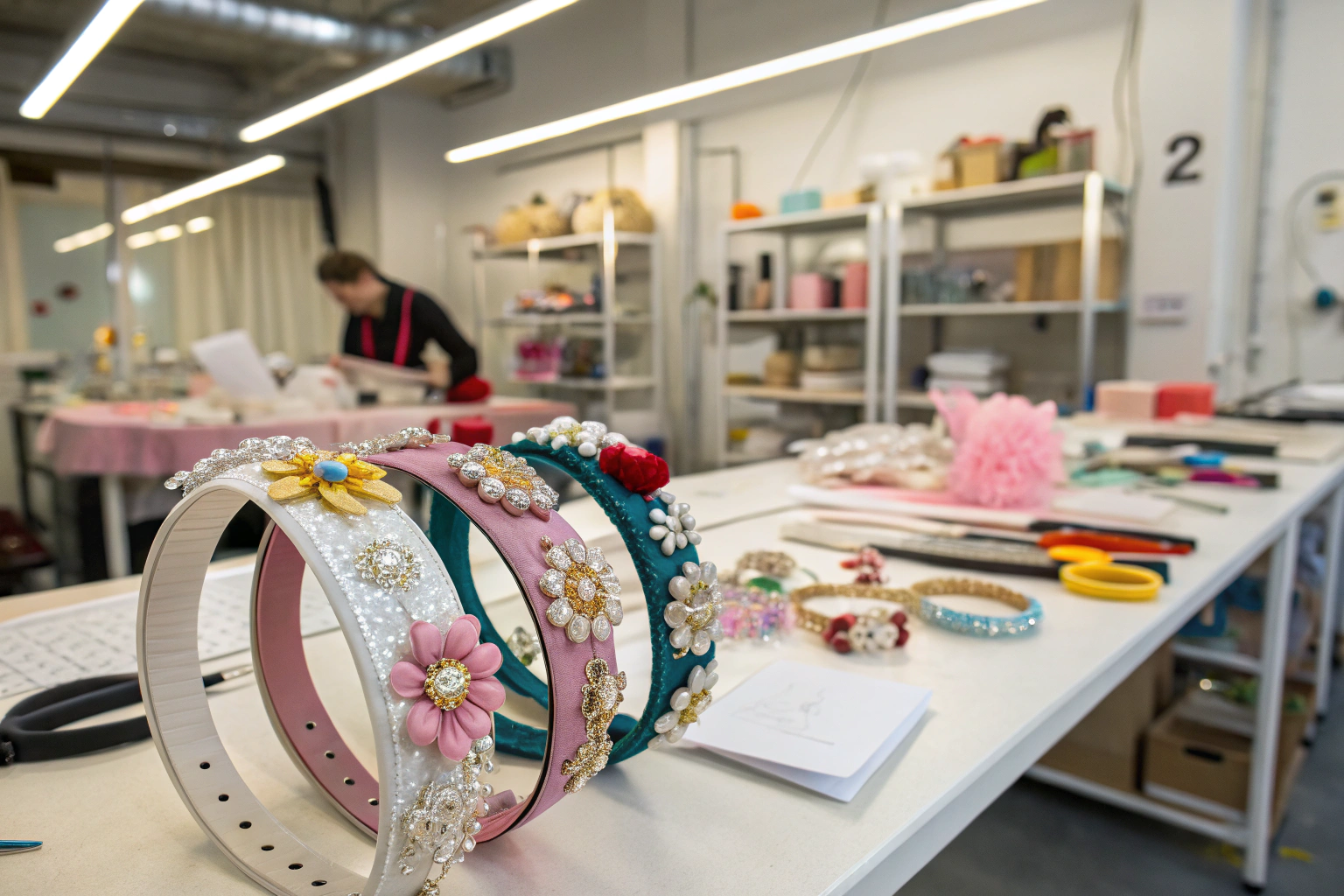The latest embellishment techniques for hair clips and headbands include crystal and rhinestone setting, resin inlay, embroidery and fabric manipulation, and molded plastic details with metallic finishes. Crystal setting involves hand-placing or machine-setting high-quality crystals like Swarovski or premium Austrian crystals onto metal bases. Resin inlay allows for colorful, three-dimensional designs that can incorporate glitter, dried flowers, or other decorative elements. Embroidery techniques add texture and pattern to fabric-covered headbands and clips. Molded plastic details with metallic finishes offer a lightweight, cost-effective way to create sculptural, statement pieces. These techniques transform simple hair accessories into fashion-forward products that command higher prices and build brand loyalty.