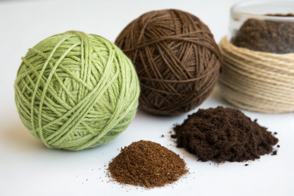Yes, you read that correctly! Some innovative companies are creating yarns infused with recycled coffee grounds. The coffee grounds are processed and incorporated into the yarn (often a blend with recycled polyester).