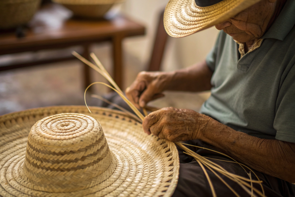 The Panama hat, despite its name, actually originates from Ecuador. It is made from the fibers of the toquilla palm. The finest Panama hats are hand-woven and can take months to complete. The weave is incredibly fine, tight, and lightweight, almost like a fabric. A high-quality Panama hat can be rolled up and passed through a wedding ring, yet it will spring back into its original shape perfectly.