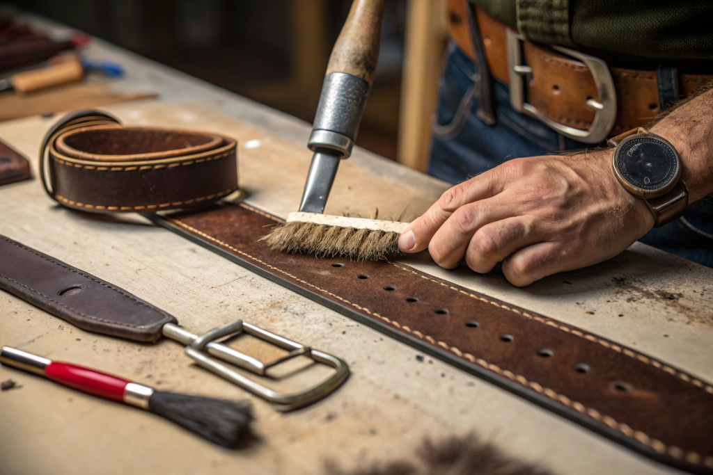 Mechanical distressing involves using various tools to create realistic wear patterns. A wire brush can be used to gently create subtle scratches and soften the surface, mimicking the effect of brushing against rough surfaces over time. Sandpaper of varying grits can be used to soften edges, create smooth spots, and lightly abrade high-wear areas like the tip of the belt and the area around the buckle. Some artisans even use dull blades or scrapers to create fine, hairline scratches that look like natural, age-related markings. The key is restraint. The goal is not to make the belt look damaged, but to suggest the gentle, cumulative wear of many years.