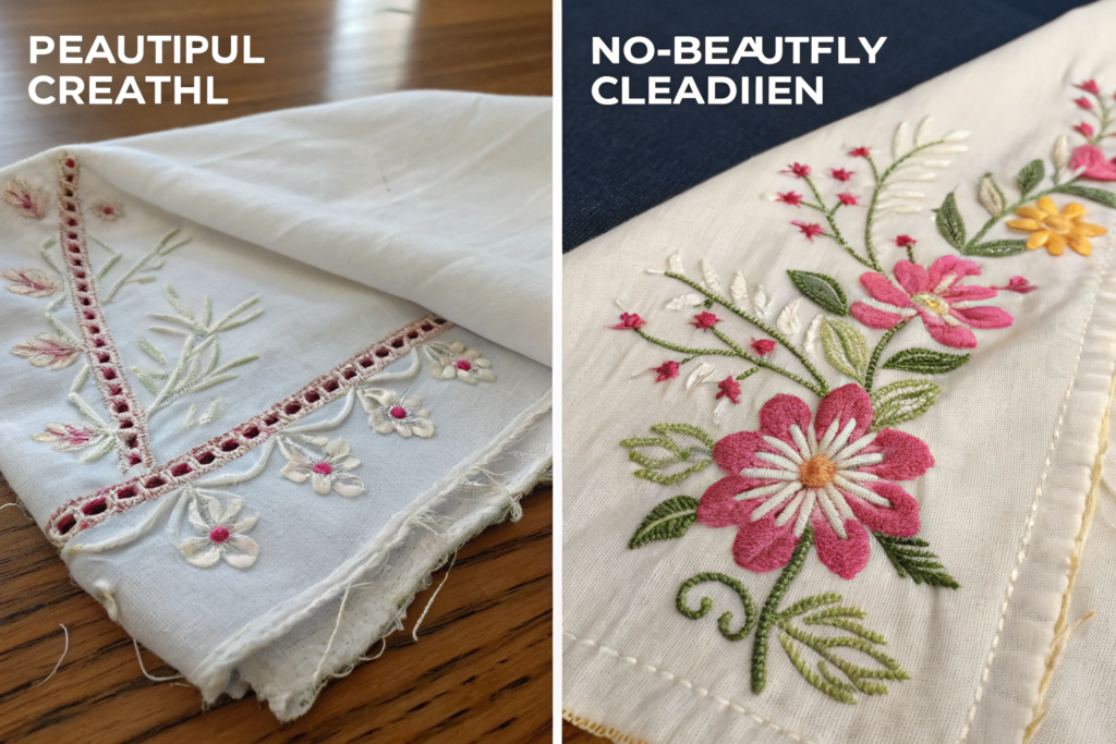 - Fabric Distortion: The tension of the embroidery threads can pull and distort the weave of the fabric.