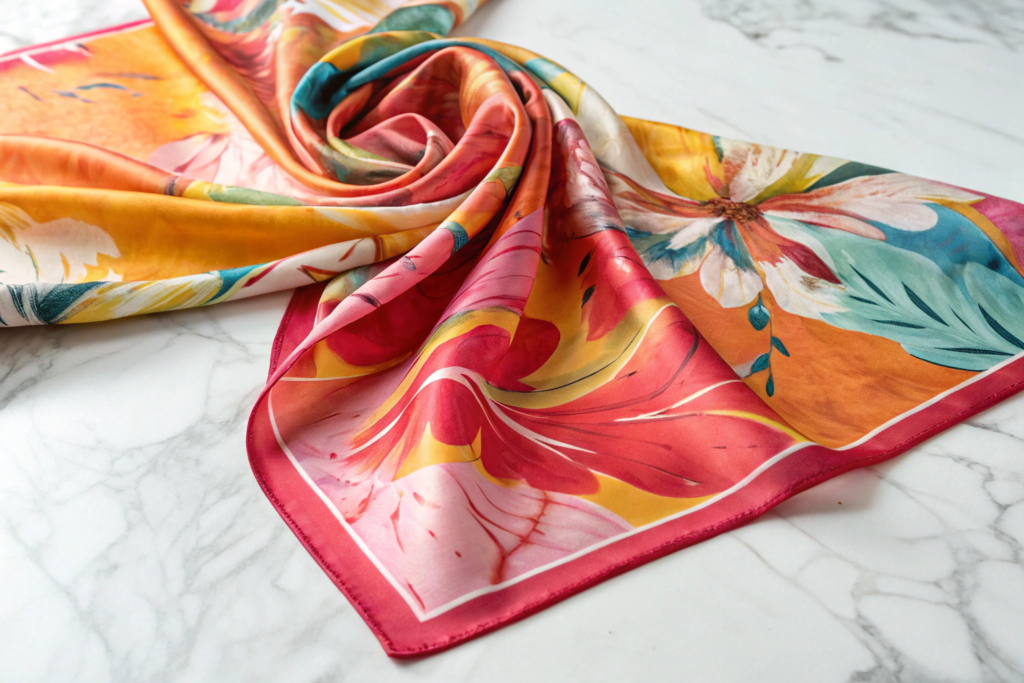 This is where technical expertise matters. A print looks different on different fabrics. On a high-quality silk twill, the colors are incredibly vibrant and the details are razor-sharp. The fabric's natural sheen makes the colors glow. On a matte fabric like cotton or TENCEL, the same print will have a softer, more muted, and watercolor-like appearance. The drape is also crucial. A stiff fabric will not flow nicely around the neck. A flimsy fabric will not hold its shape. For a printed scarf to be successful, the fabric must be chosen with both the design and the end use in mind. A bold, graphic print might be perfect on a crisp, structured silk. A soft, abstract floral might be better suited to a flowing, fluid modal. Our quality control team tests every new fabric and print combination to ensure the final product meets our standards for both beauty and performance.