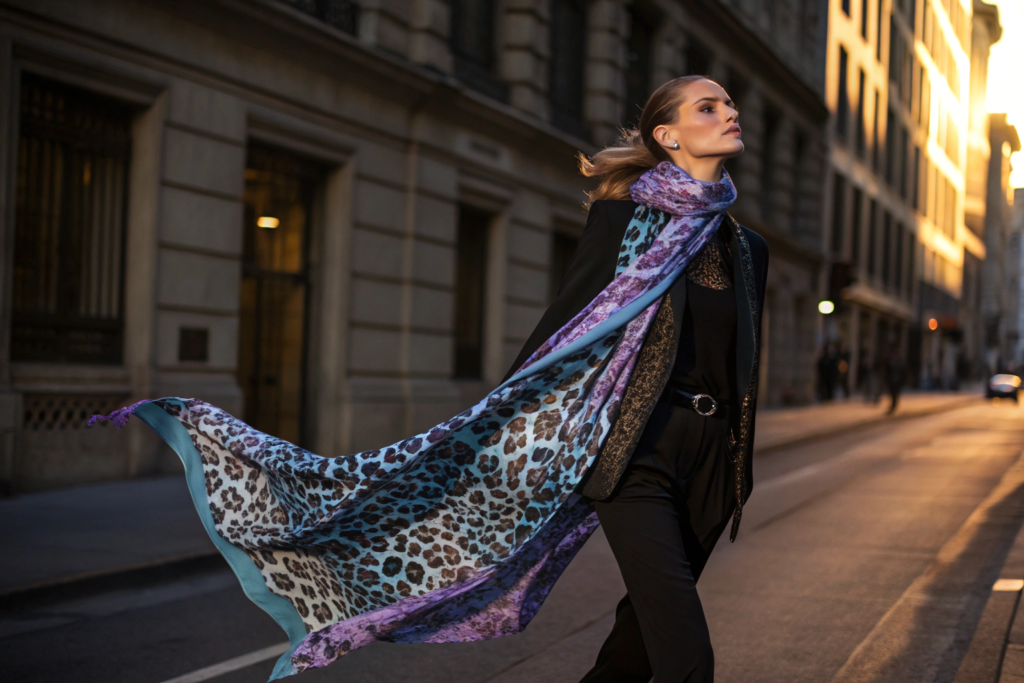 The biggest change is the color palette. Forget the standard browns, blacks, and tans. The new animal prints are "colorized." Leopard spots are appearing in vibrant shades of fuchsia and orange on a deep purple background. Zebra stripes are rendered in electric blue and silver . This is a direct response to the "dopamine dressing" trend, where people wear clothes that make them feel happy and energized . By using unexpected colors, the familiar animal print feels completely new and modern. It also makes the scarf easier to integrate into a contemporary wardrobe. A neon leopard print scarf can be the pop of color that brings a neutral outfit to life. We are producing these for clients who want to offer their customers a fresh take on a proven bestseller.