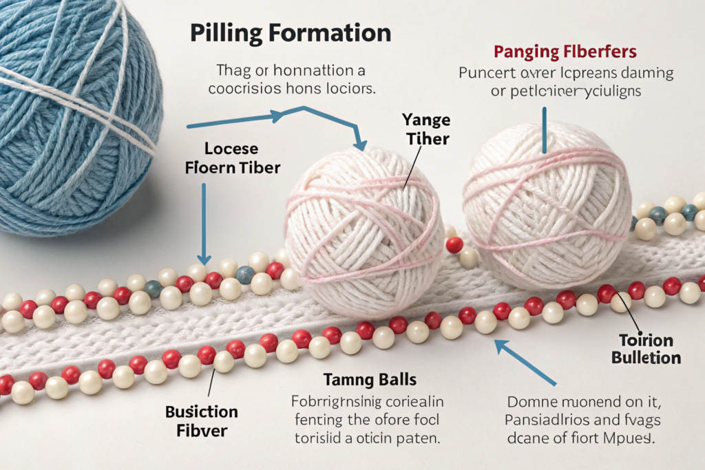 Pilling looks simple but involves complex physics. Fibers work loose from yarn, entangle with neighbors, and form balls. Understanding this process helps identify prevention points. The mechanism is consistent across all fabrics.