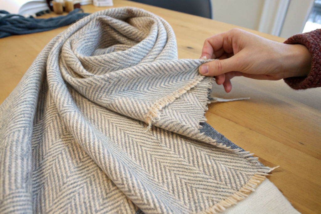 Woven scarves, especially those with a loose, open weave or a delicate fringe, are incredibly vulnerable to snagging. The journey from our factory to your warehouse involves many handling points and a lot of vibration. Inside the shipping container, the cartons vibrate and rub against each other. Inside the carton, if the scarves are not properly protected, they can rub against the raw, rough cardboard of the carton interior. The fringe, with its many loose ends, is particularly susceptible. It can catch on the cardboard, on other scarves, or on the adhesive tape used to seal the carton. The result is pulled threads, distorted fringe, and a scarf that looks instantly worn and damaged. The solution is a complete barrier. Every single scarf must be individually protected. We place each scarf in its own clear, food-grade polybag. This bag protects the scarf from abrasion against the carton, from moisture, and from snagging on other scarves. For premium scarves, we use a thicker, more luxurious-feel polybag or even a tissue paper wrap inside the polybag. This individual polybag protection to prevent snagging and fringe damage during scarf transit is a non-negotiable standard.