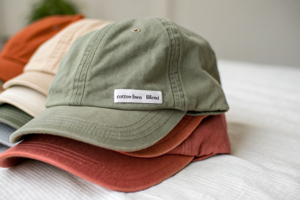 We use these blends for Bucket Hats and Newsboy Caps. The fabric gives the hat a rustic, artisanal, European summer vibe. It photographs beautifully. It appeals to a customer looking for natural fibers and a unique texture. The cost is higher than a poly-cotton blend, but it positions the hat in a premium niche where higher margins are achievable.