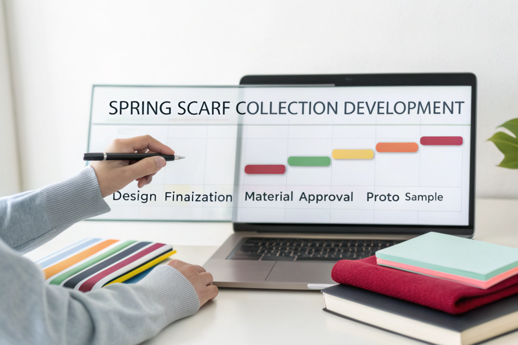 Selecting a material is only half the battle; understanding its lead time is critical for realistic scheduling. A stunning, unique Italian jacquard may be perfect for your luxury scarf, but if it has a 60-day procurement time, it will single-handedly delay your entire sampling and production schedule. A competent supplier will immediately flag such issues. During the material selection phase, we provide not just the sample swatch but also key data: stock availability, minimum order quantity (MOQ), and procurement lead time. This allows for intelligent trade-off decisions. You might choose a stunning material with a long lead time for your premium line and a similar, more readily available alternative for a faster-turnaround capsule collection. This proactive transparency in planning, a practice emphasized in project management methodologies, prevents frustrating bottlenecks later and allows you to sequence your development pipeline strategically.