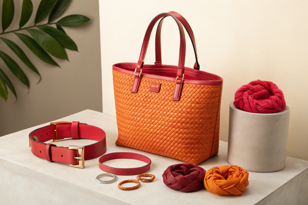 | Persimmon | Reddish, fruity, grounded with brown undertone | Woven raffia bags, leather watch straps, resin bangles |
