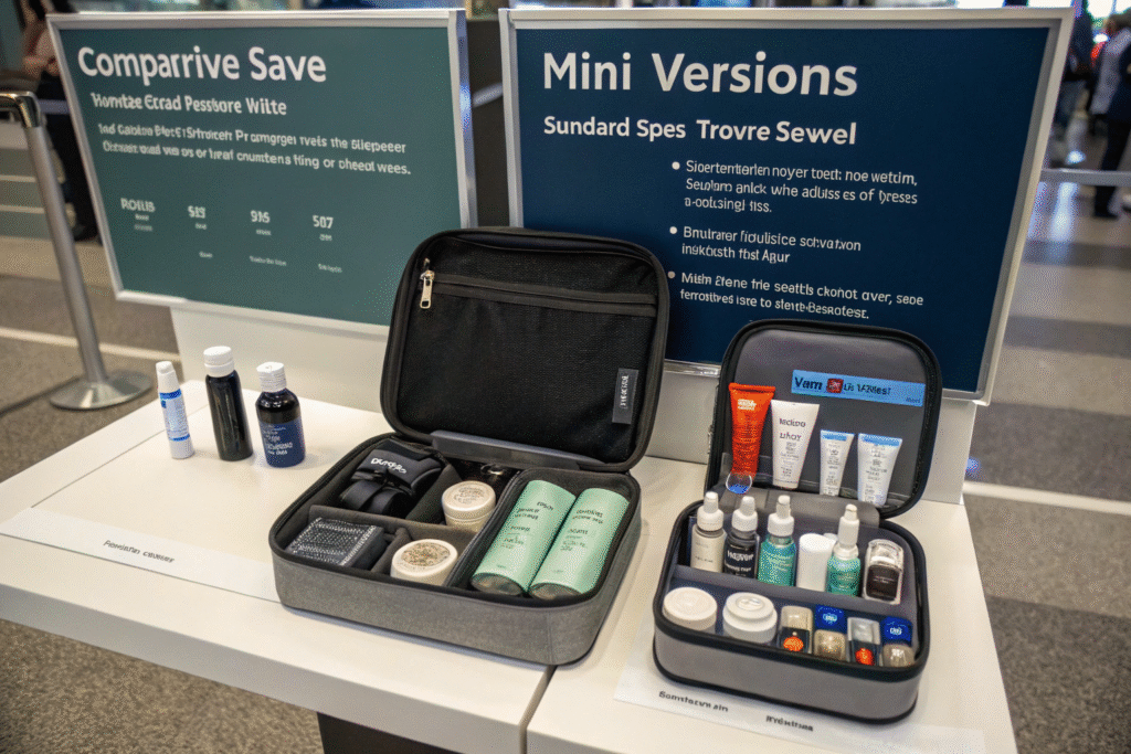 Mini versions of essentials save significant space through concentrated formulas, compact designs, and travel-optimized formats that maintain functionality while reducing physical dimensions by 50-80% compared to standard products.