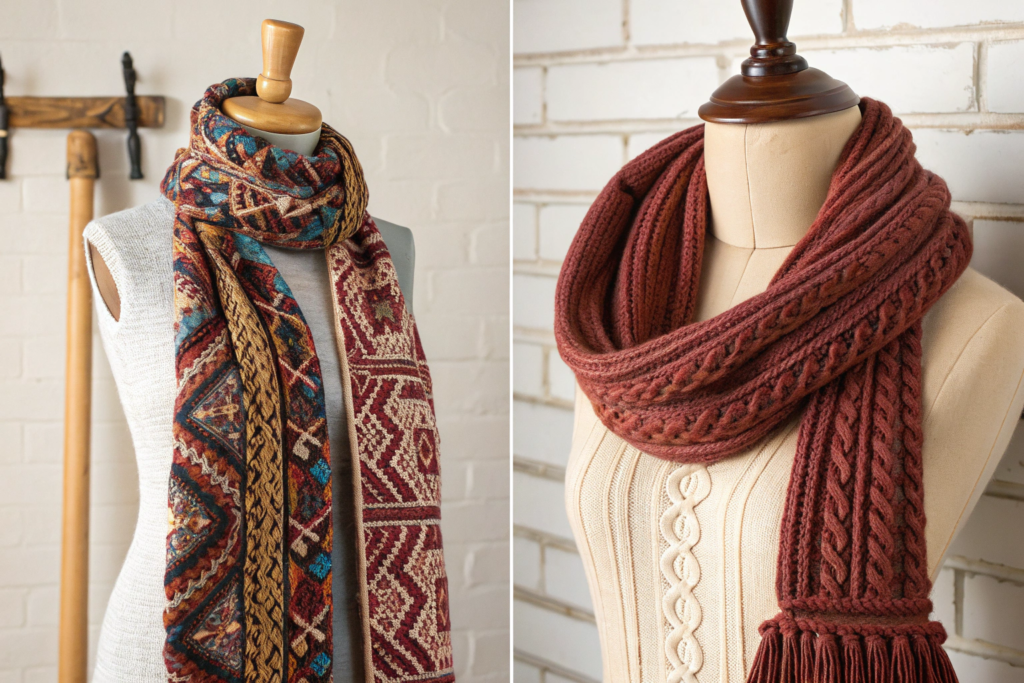 How Do Structure and Drape Differ Between Woven and Knitted Scarves?