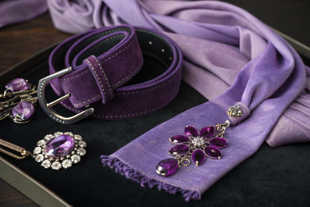 Purple evokes luxury, creativity, and spirituality. Historically, purple was rare and expensive. It was associated with royalty. Today, purple still conveys premium quality. In accessory design, purple is used for high-end items. A purple velvet belt or a purple silk scarf suggests luxury. Lighter purples like lavender are softer. They evoke romance and nostalgia. Purple also conveys creativity. It is associated with artists and innovators. Purple is popular for evening wear and special occasions. It is also used for brands that want to appear creative and unique.
