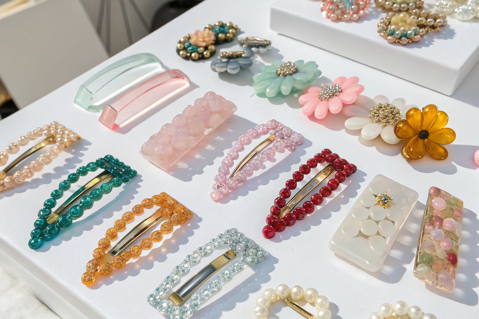 Key functional styles include large claw clips for volume hair, medium clips for half-up styles, small detailed clips for accent pieces, and specialized designs for specific hair textures. At AceAccessory, our functional collections undergo rigorous testing to ensure they provide secure holds without damaging hair, combining ergonomic design with the visual appeal of quality acrylic materials.