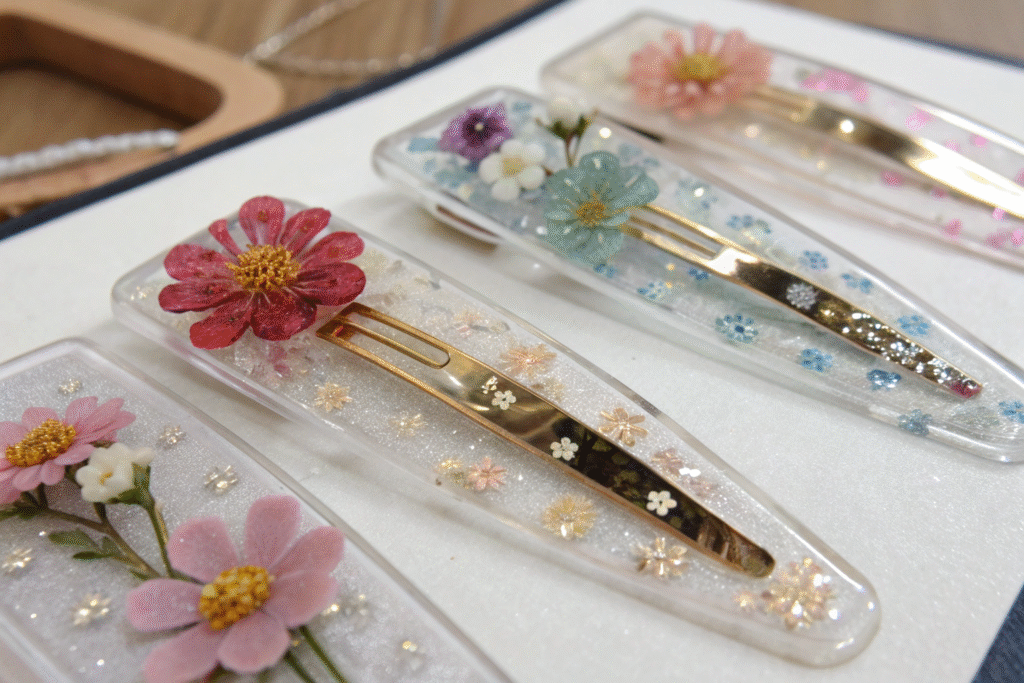 Floral encapsulated clips undergo a meticulous process that begins with selecting and preserving delicate flowers or using high-quality artificial alternatives. Each element is carefully positioned within molds before clear acrylic resin is poured and cured to perfection. Our floral collections feature seasonal blooms, timeless rose designs, and wildflower arrangements that appeal to different consumer preferences. The encapsulation process preserves the floral elements' beauty while creating durable, waterproof accessories that withstand daily wear without compromising their aesthetic appeal.