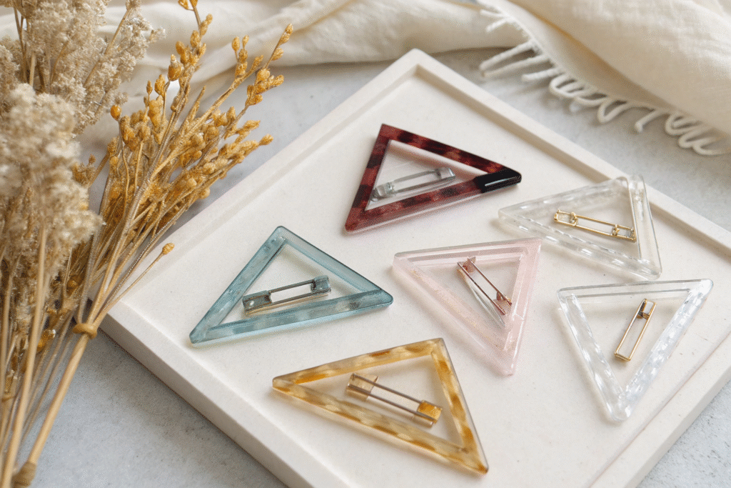 Abstract geometric designs gain popularity through their unique shapes that stand out while maintaining architectural elegance. Asymmetric forms, interlocking shapes, and negative space elements create visual interest that appeals to fashion-forward consumers seeking distinctive accessories. Our abstract geometric collections incorporate layered acrylic in contrasting colors and finishes, creating depth and dimension that transforms simple hair clips into statement pieces. These designs particularly perform well in markets where consumers value individuality and artistic expression in their accessories.