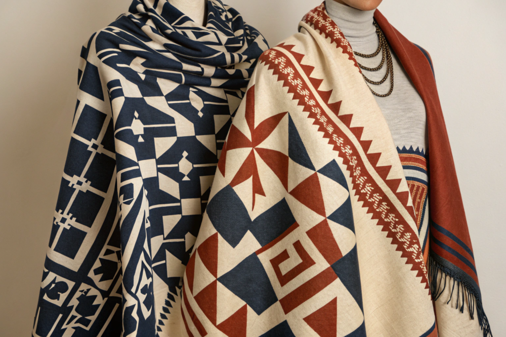 The key geometric patterns for 2026 include oversized checks, bold stripes, and abstract geometric shapes. Oversized checks are appearing in color combinations like navy and cream, forest green and camel, and burgundy and beige. Bold stripes are being used in both horizontal and diagonal orientations. Abstract geometric shapes, like triangles and hexagons, are being arranged in repeating patterns that feel modern and fresh. These patterns work well on larger shawls where the design can be fully appreciated. They appeal to consumers who want a statement piece.