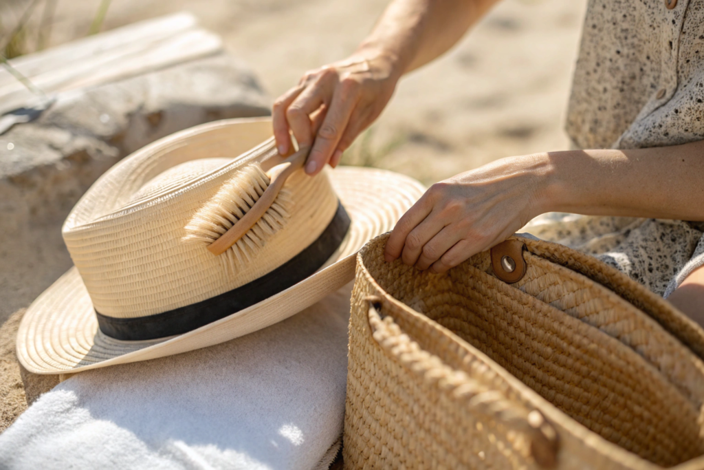 • Storage: Store natural material accessories in a cool, dry place away from direct sunlight, which can cause fading and drying. Stuff hat crowns with acid-free tissue paper to help them retain their shape. Store bags in breathable fabric dust bags (not plastic) to prevent mold and mildew. This is especially important in humid climates, as we discussed in best anti-mold treatments.