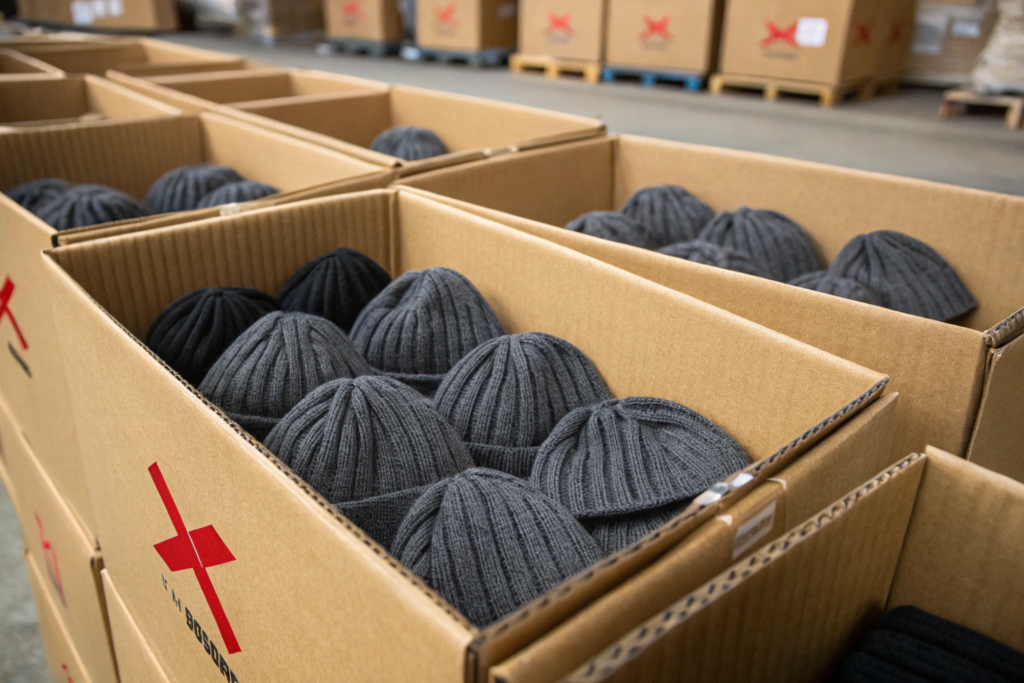 The best way to store bulk knit hats before shipping is to protect each hat individually in a clear polybag, pack them snugly but without extreme compression in sturdy, correctly sized corrugated cartons, and store those cartons in a cool, dry, and climate-controlled warehouse environment, elevated off the floor on pallets to prevent moisture absorption and pest intrusion.