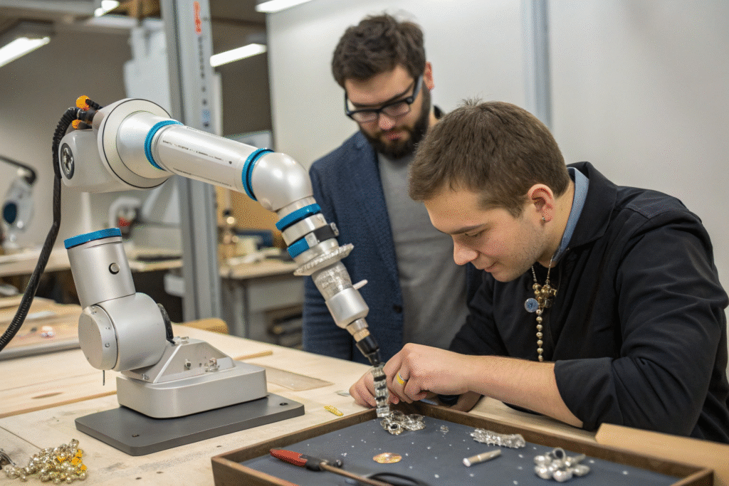 Precision material handling of small, delicate components like gemstones, clasps, and fine chains represents an ideal cobot application where human hands face limitations in consistency and endurance. Our jewelry division now uses cobots to position microscopic stones for pavé settings—a task that caused eyestrain and consistency challenges for even our most skilled artisans. This precision augmentation has improved setting accuracy by 47% while reducing artisan fatigue, allowing humans to focus on creative layout and quality evaluation rather than repetitive precision tasks.