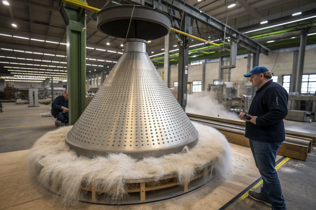 This first step is critical and highly controlled. The amount of fiber used determines the final weight and quality of the hat. The distribution of the fibers on the cone must be perfectly even to ensure a consistent thickness. At this stage, the hat body is huge—often two to three times the size of the final hat—and so fragile that it can barely support its own weight. It is not yet "felt," but simply a delicate web of interlocked fibers, held together by the microscopic barbs on each strand.