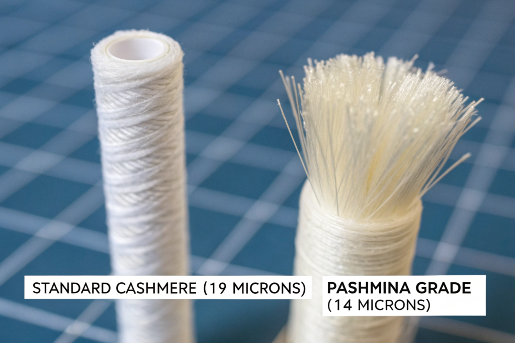 So, what is the real difference? The difference lies in the fiber's origin, diameter, and the traditional meaning of the word. The four key distinctions are: 1) "Cashmere" is the broad, legally defined term for the fine undercoat of any cashmere goat, while "Pashmina" traditionally refers to the finest, most specific subset of cashmere from a particular goat in a particular region, 2) Pashmina fibers are typically finer (12-15 microns) than standard cashmere (up to 19 microns), making them softer and lighter, 3) True pashmina is traditionally hand-spun and hand-woven due to its delicacy, whereas most cashmere is machine-processed, and 4) The word "Pashmina" has been widely diluted into a marketing term for any large shawl, regardless of material, while "Cashmere" remains a protected, legally defined fiber type. At Shanghai Fumao Clothing, we believe that understanding this distinction is the first step to appreciating true luxury.