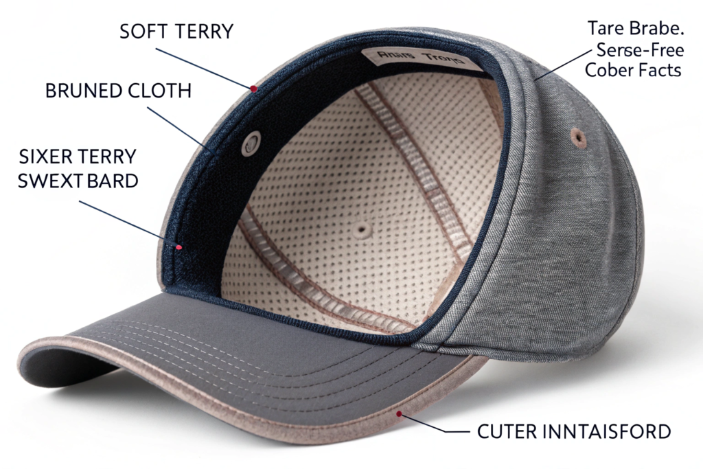 - Terry Cloth or Performance Strips: A soft, absorbent terry cloth sweatband is a classic, effective choice. Higher-end caps may use a Dri-FIT or CoolMax branded strip that actively wicks and dries faster than cotton.