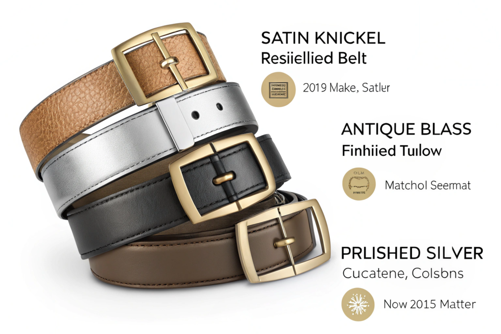 The most trend-resilient belt hardware finishes are satin nickel, antique brass, and polished silver. These finishes have remained consistently popular for over thirty years. They work with both warm and cool clothing tones. They transition seamlessly from casual to formal. They do not scream a specific decade. High-shine gold, matte black, and colored enamel are trend-driven. They dominate for two to three years. Then they disappear. We maintain inventory of classic finishes year-round. We produce trend finishes only on firm, non-cancelable orders. This protects our clients from obsolescence. It also protects us.