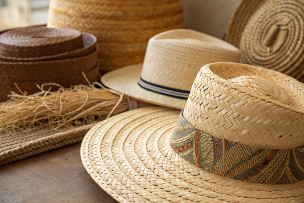 What natural materials are used in sustainable straw hats?