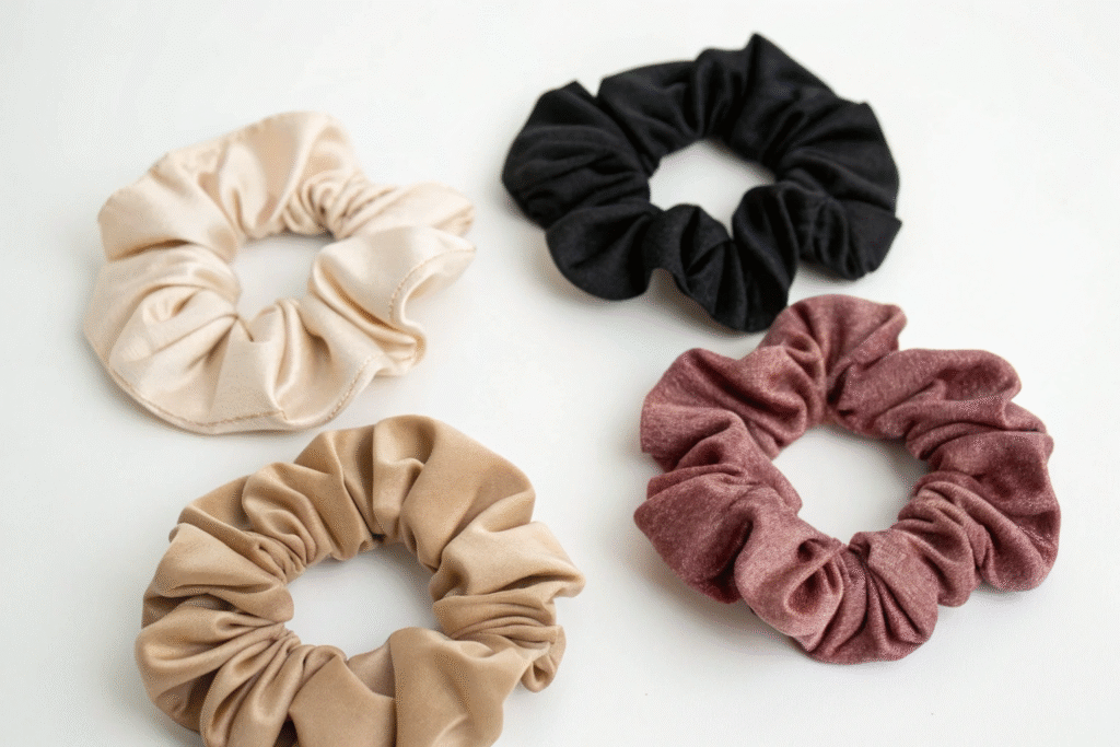 Wider elastic bands (1/2 inch or more) distribute tension across a larger surface area, reducing stress on individual fibers. Multiple rows of stitching securing the elastic ends prevent pulling out and maintain consistent tension. Encased elastic construction where the elastic is fully surrounded by fabric protects it from direct exposure to oils, sweat, and environmental factors. Strategic elastic length relative to fabric length creates the ideal fullness without overstretching. Quality control in elastic manufacturing ensures consistent fiber thickness and minimal defects that could create weak points. These construction considerations significantly extend the functional lifespan of scrunchies.
