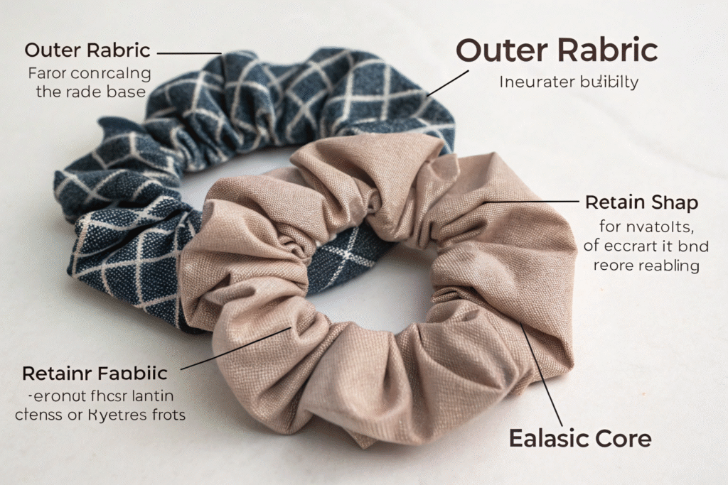 The elastic core represents the most critical component for scrunchie shape retention, as it determines the product's ability to return to its original form after stretching. Different elastic types offer varying levels of durability and recovery.