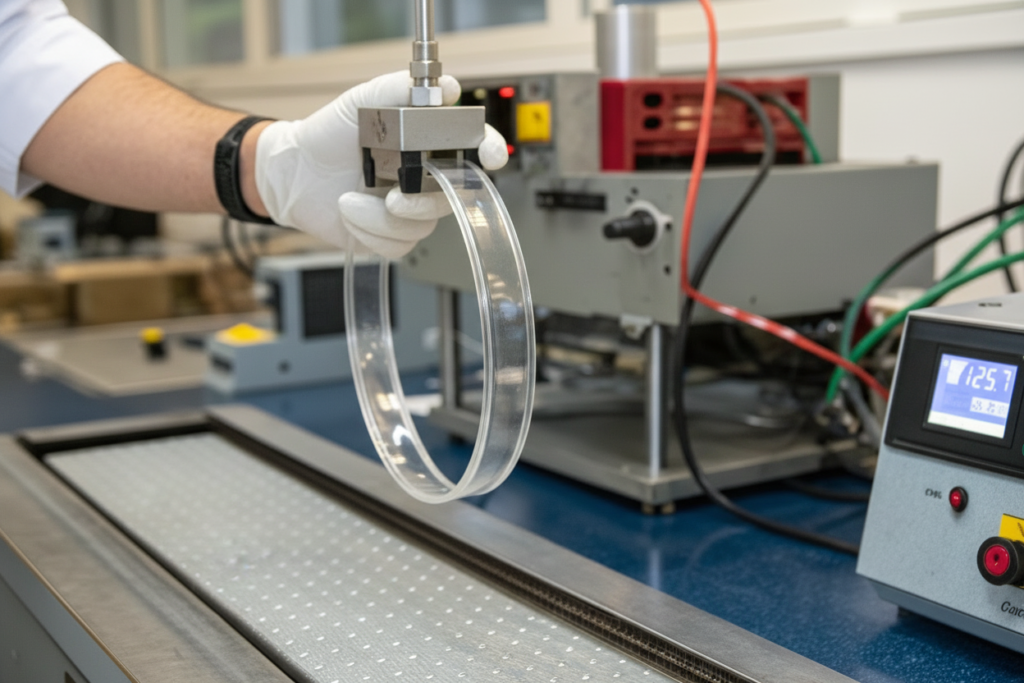 Also, inspect the band after flexing it back to its original shape. Does it return to its original curve? Or does it stay slightly deformed? A band that permanently deforms easily will become loose and fall off the head after a few wears. This simple manual flex test for acrylic headband durability can be performed on a pre-production sample to screen for obvious material defects.