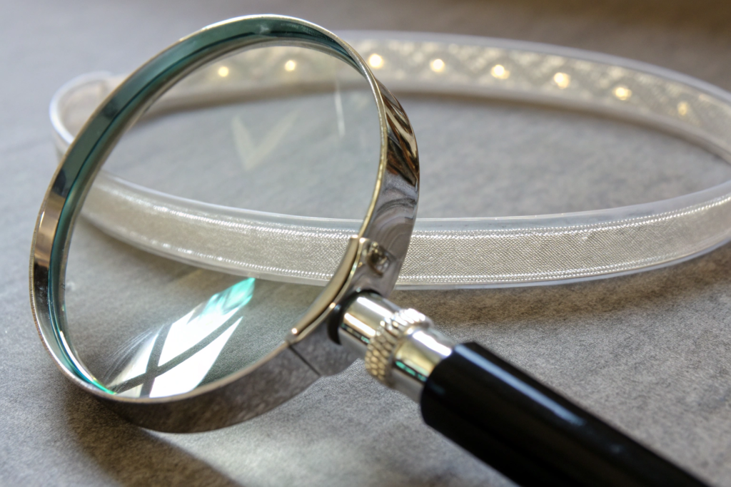 At Shanghai Fumao, we use a go/no-go fixture for each specific headband style. The finished band is placed in the fixture. If it fits within the acceptable tolerance range, it passes. If it is too narrow or too wide, it fails. This is a fast, objective, and repeatable quality check performed on a sample from every molding machine shift. This dimensional inspection using go no go fixtures for injection molded accessories ensures that every band meets the fit specification.