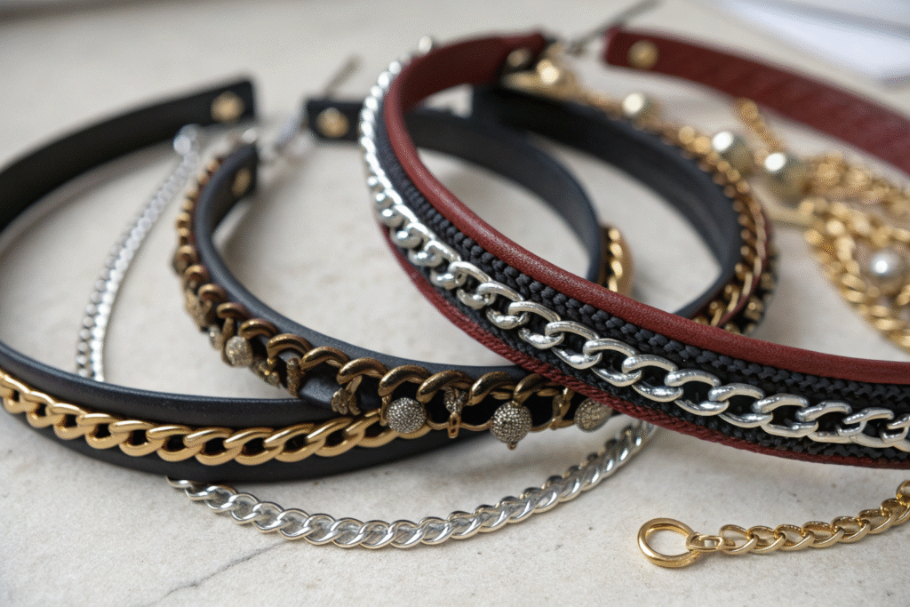 Mixed material hair hoops that combine metals with unexpected elements are emerging as significant trends in street style, creating textural contrast and conceptual depth that elevates hair accessories beyond simple adornment.