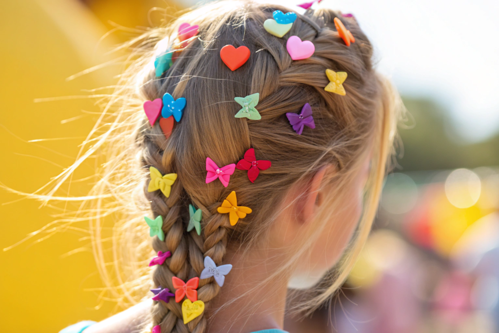 This trend is joyfully excessive. Key items include the butterfly clip (a forever icon), but now in chunky, translucent resin or with holographic finishes. Other motifs include smiley faces, fruit shapes (cherries, strawberries), heart charms, and plastic gemstones. The styling is "more is more": clustering multiple small clips along a part, mixing colors and shapes asymmetrically, or using a single large, whimsical piece as a statement. The mood is optimistic, playful, and deeply connected to the "Dopamine Dressing" movement, using accessories as a direct source of fun.