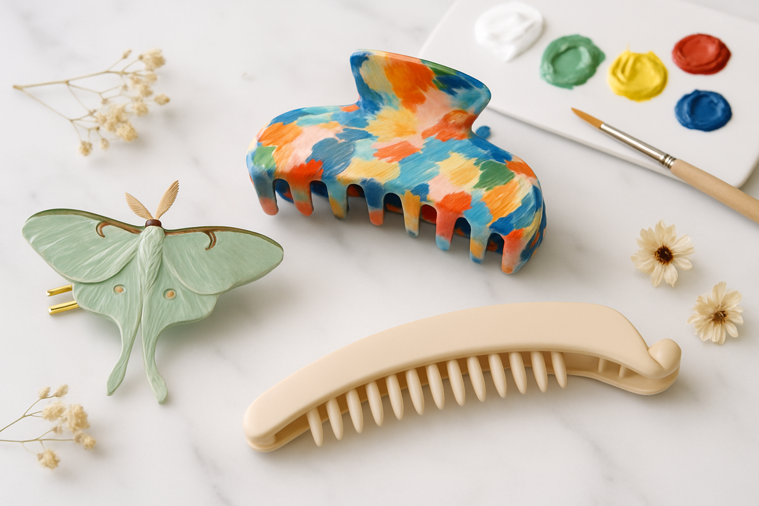 The resurgence of the claw clip, especially oversized versions, is a major trend. For boutiques, the hand-painted element is a key differentiator. While plain colored clips are common, a clip with a unique, hand-applied design becomes a signature item. These clips cater to a real consumer need for stylish yet practical solutions for managing thick hair. The product innovation lies in combining this practical function with high-fashion aesthetics. As a manufacturer, we understand that development isn't just about looks; it's about engineering the clip's grip and balance to ensure it works as beautifully as it looks, a principle we apply to all our accessory product development.