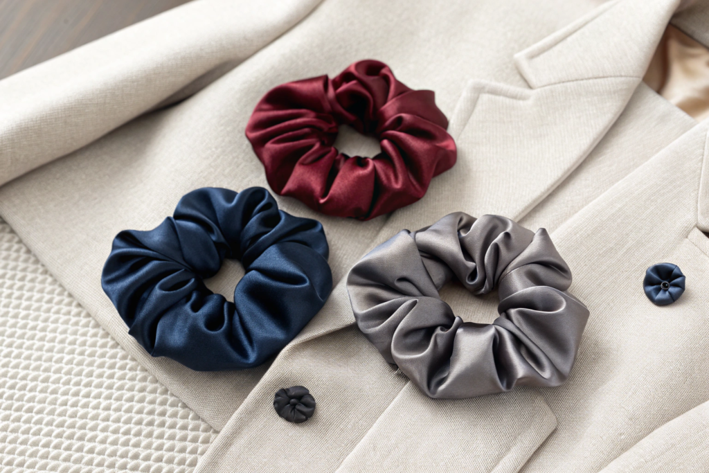 Once considered a relic of the 90s, the scrunchie has been reinvented as a premium office accessory. The shift is driven by materials—specifically silk and satin—which offer a no-crease benefit through smoothness rather than structure. For the office market, these scrunchies represent an upgrade, blending hair care benefits with a touch of understated luxury.