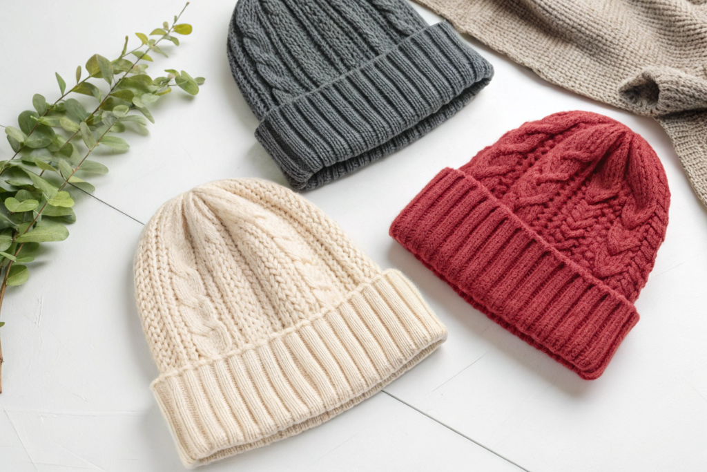 • 1x1 or 2x2 Rib Knit: The classic, stretchy beanie look.