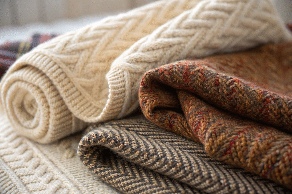 • Chunky Cable & Ribbed Knits: Evoking traditional craftsmanship and providing substantial warmth. The raised patterns create beautiful light and shadow.