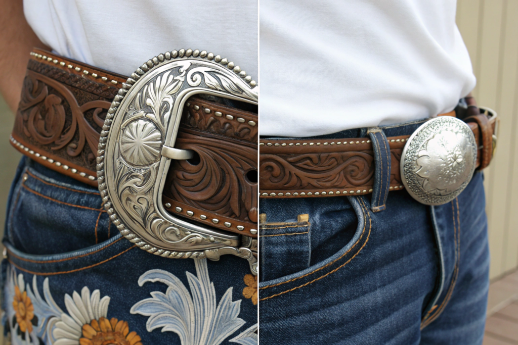 The buckle is often the star of the show. Western buckles are typically larger and more ornate than standard belt buckles. Key characteristics include: