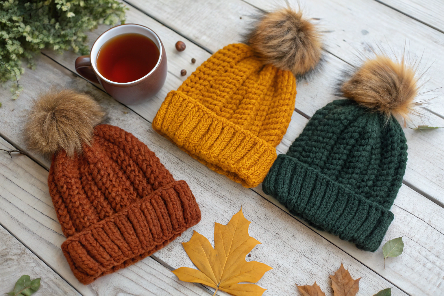A chunky knit beanie perfectly embodies this aesthetic. The visible stitches—the cables, the ribs, the waffle knits—look like they were made by hand with love. The pom-pom adds to this handcrafted feel.