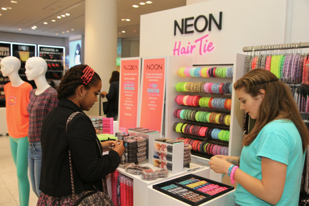 Effective neon hair tie merchandising involves strategic placement, clear styling education, and creating color coordination systems that help customers envision how these bold accessories fit into their existing wardrobes.