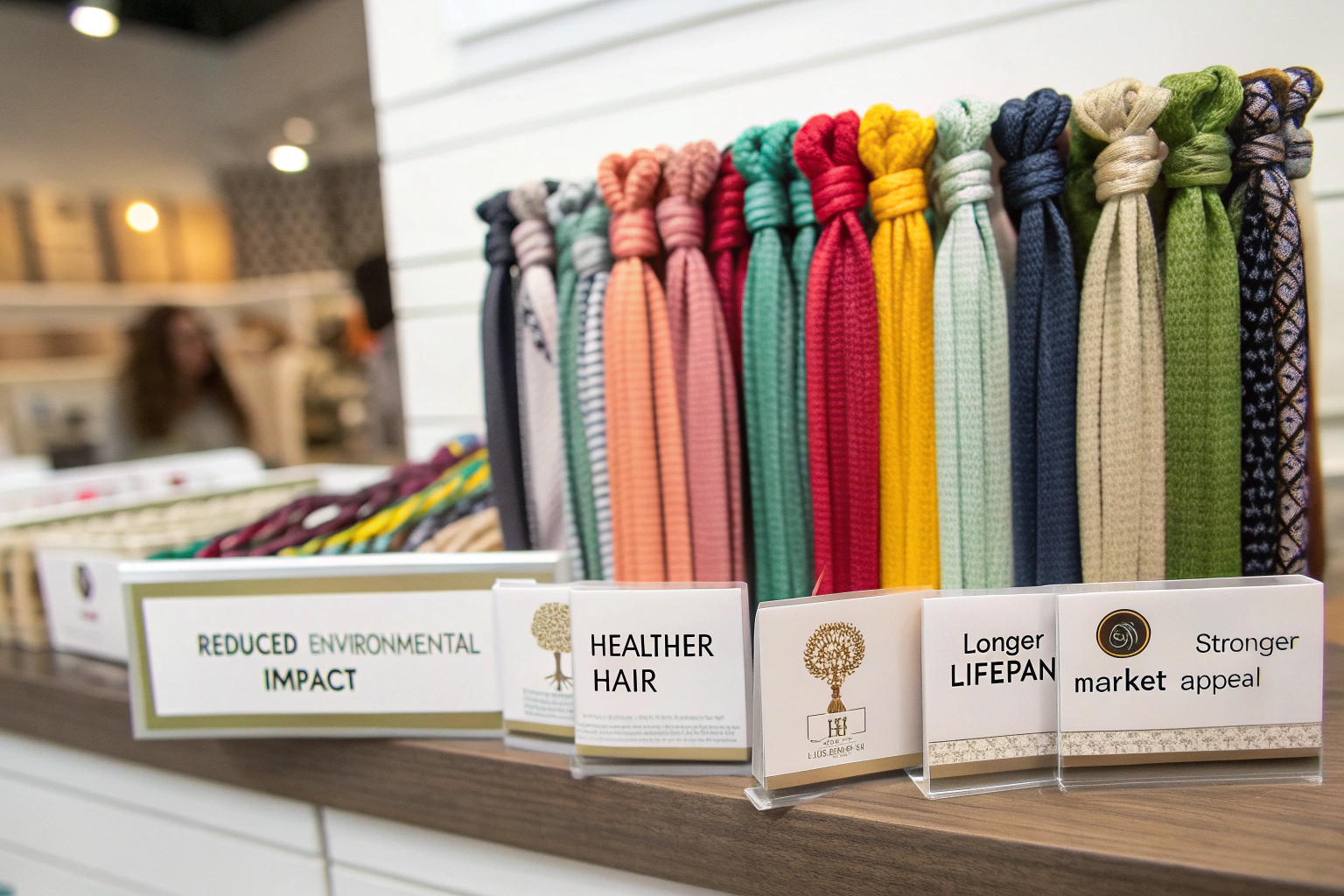 Sustainable hair ties are outperforming traditional options due to consumer demand for eco-friendly products, superior material quality, better durability, and alignment with modern brand values. These products offer tangible benefits including reduced environmental impact, healthier hair, longer lifespan, and stronger market appeal, making them a smarter choice for both consumers and retailers.
