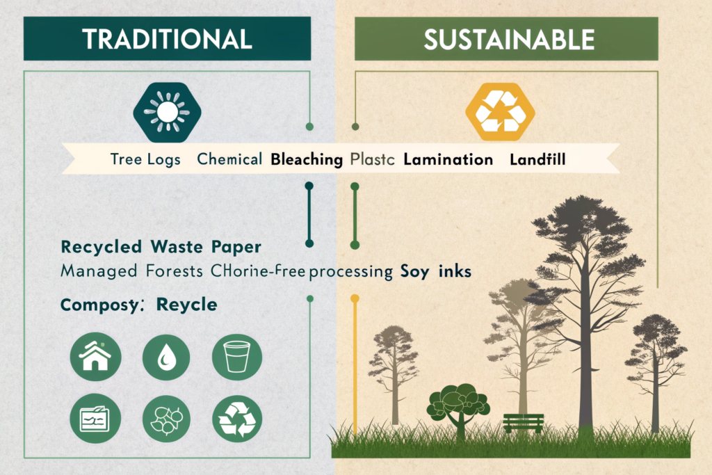 - Recycled Paper/Cardboard: Using post-consumer waste (PCW) content dramatically reduces energy and water consumption compared to virgin paper. It diverts waste from landfills and closes the recycling loop.