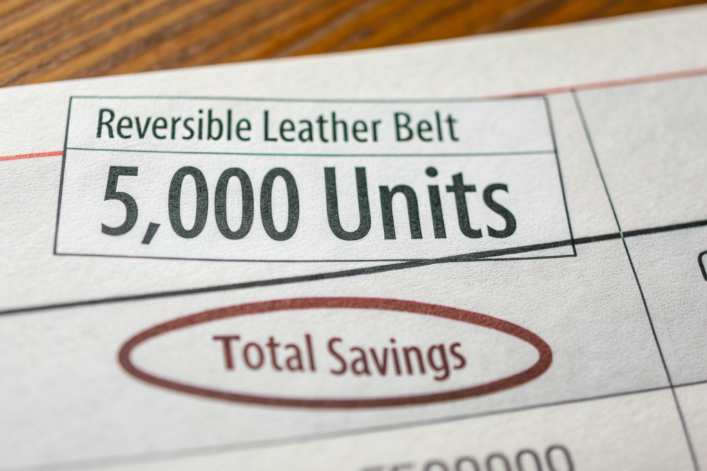 While a reversible belt might have a slightly higher manufacturing cost than the cheapest single-sided belt, this is completely offset by the power of bulk purchasing. Because you have consolidated your entire core belt demand into a single SKU, you can now place a much larger order for that one item. Instead of ordering 1,000 black belts and 1,000 brown belts, you are placing a single order for 2,000 reversible belts.